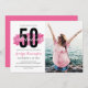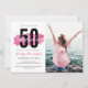 Cute Hot Pink Watercolor 50th Birthday Party Photo Invitation