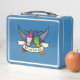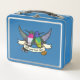 Cute hummingbirds on a metal lunch box. Use "Edit this design" to add your own name or text to the ribbon and create a unique, customized item. Drawn in cartoon style, but loosely based on the 'golden-tailed sapphire' and 'broad-tailed' hummingbirds. Quirky animal artwork for nature lovers.
