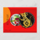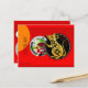 Golden Rat paper-cut seems to open a round window for Your photo onto a red background. Design on horizontal postcard with the same rat+ speech bubble with greeting in back. Matching greeting card, craft products and more... Perfect for a humourous and personalised Chinese New Year of the Rat 2020.