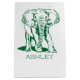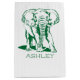 Cute hunter green elephant line drawing over white stripes. Custom monogram