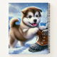 Cute Husky Puppy Playing in Snowy Winter Landscape Notebook