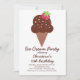 Modern & cute chocolate ice cream cone with sprinkles and a red strawberry set on a crisp white background. Flip our fun girls summer pool party birthday invite over to find a pink stripe back for an extra special touch.