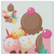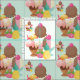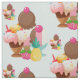 A summertime pattern with a bowl of ice cream with 3 delicious scoops covered in candy sprinkles. An ice cream cone also with 3 scoops of chocolate, vanilla and strawberry. A dessert bowl filled with neopolitan flavoued ice cream with a delicious cherry on top.