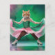 Cute Ice Skating Cat in Pink and Green Postcard