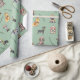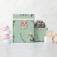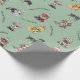 This cute Christmas patterned wrapping paper features assorted illustrated dogs wearing festive winter holiday hats and scarves. It includes punny Christmas phrases (Happy Howlidays, Paw Humbug, Furry and Bright, Yappy Holidays, and Santa Claws) that you can leave as is or customise with your own family name or other holiday greetings. The background is a pale green that will fit in with any Christmas decor.