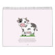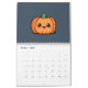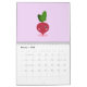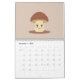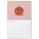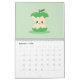 A 12 months Calendar with cute illustrations in Kawaii Style: hippo, lemon, radish, unicorn, bunny, frog, avocado, tomato, pear, apple, pumpkin, mushroom, Christmas tree and cow. Perfect for a funny year!