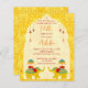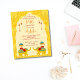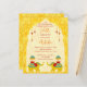 Playful Indian wedding elephants yellow haldi budget invitation template, yellow pattern background, cute wedding elephants, for haldi invitation.