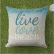 Beautiful contemporary teal turquoise blue ocean surf waves and beach shore with fun inspiring Live Love Beach quote text. Made for motivational, inspirational and typography art lover, the lover of the ocean, sea, and beach, and the beachy colours loving artistic exterior decorator. Stylish trendy colourful tropical style outdoor home decor accent for decorating the front porch rocking chair, backyard patio, or pool deck lounge furniture of your beach vacation cottage house.