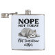 The flask itself is fine. It’s a cheap flask, obviously bought in bulk, however am prepared to overlook that. Given that it is a personalized item, I would have liked to have seen gift boxing instead of the generic packaging. Terrible printing, and/or quality. It’s a cheap, tacky vinyl. It is not cut straight and is also applied in a way that it is overhanging the bottom, causing the glue to catch on items and it will eventually roll and tear, damaging the wrap.