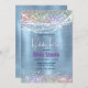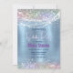 Cute iridescen ice blue faux glitter monogram invitation