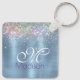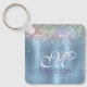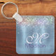Cute iridescen ice blue faux glitter monogram key ring