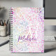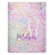 Make back to school fun with this Cute personalised Notebook. It is designed with elegant girly iridescent glitter drips in unicorn rainbow aqua turquoise purple.