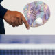 Cute Iridescent Blue Purple Gold Marble Monogram Ping Pong Paddle