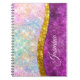Make back to school fun with this Cute personalised Notebook. It is designed with elegant girly iridescent glitter in unicorn rainbow pink fushia gold colours.