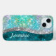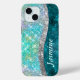 Cute iridescent turquoise faux glitter monogram Case-Mate iPhone case