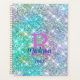 Cute iridescent unicorn blue faux glitter monogram planner