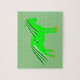 This awesome jigsaw puzzle features a graphic image of a cute Irish unicorn. The unicorn is bright green with a mane and tail made of two more shades of green. It has a bright gold horn and golden hooves. The unicorn has a gold ringed eye and a friendly smile. There are four small Shamrocks on the side of the unicorn.