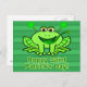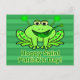 A cute green frog for St Patrick's Day. This funny St Paddy's design features a frog with shamrock antennae and shamrocks on its leg, and it's also catching a clover on its long green tongue. The green text says, "Hoppy Saint Patrick's Day." This is an adorable design for anyone who likes animals / animal puns and wants to send a lucky green postcard for St Patty's Day.