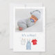 Celebrate your baby boy's arrival with this adorable "It's a Boy" announcement! Featuring a cute, simple clothesline design in a stylish denim blue jeans colour, this elegant watercolor illustration brings a modern, trendy touch to your special announcement. The whimsical and unique creative layout is enhanced by beautiful calligraphy script typography, while the minimalist design keeps it simple yet sophisticated. Perfect for sharing your joyful news in a way that's both adorable and chic!