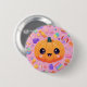 Add a touch of Halloween to your outfit quickly and easily with this cute button! A round, smiling jack-o’-lantern sits at the centre, its big black eyes sparkling with star-shaped pupils and rosy pink cheeks adding extra charm. Surrounded on all sides by colourful Halloween candy, the playful design pops against a soft pink background. Perfect for fans of kawaii art, Halloween treats, and cheerful spooky vibes.
