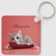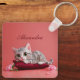Cute January Cat with Carnations Key Ring