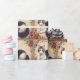 Cute Japanese Bobtail Cat Colourful Flowers Border Wrapping Paper