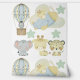 Cute blue themed wallpaper for nursery featuring jungle animals in plane, hot air balloon, clouds and stars