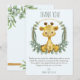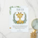 These sweet jungle safari baby shower thank you cards are sure to put a smile on family and friends faces when they receive your jungle safari thank you card. These giraffe thank you for baby shower features a sweet baby giraffe surrounded by a wreath of eucalyptus botanical greenery and gold trim. Personalise with your names and a customised note for an extra special touch.