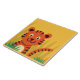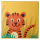 This Cute Jungle Tiger Decorative Ceramic Tile features an adorable smiling tiger with bold orange stripes set against a warm golden-yellow background with soft grass accents. The playful illustration style adds charm and personality to nurseries, playrooms, and family spaces.