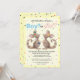 Cute watercolor Kangaroo Mamas with Joeys in their pouches face off on this gender-reveal baby shower invitation. One kangaroo mum complete with floral hat has a baby boy joey peeking out of her pouch. He's wearing a dark blue polka dot bow tie. The other Kanga mum also has a little joey -- a girl -- peeking out of her pouch. Mama and daughter wear matching floral hats. The adorable Aussie Kangas are drawn with long eyelashes, pink inner ears and touches of gold brushed on their brown coats. Both the card's front and back are medium yellow, covered with multicolored polka dots. However, on the front, a translucent filter mutes the background so that your text is easily legible. It's a simple matter to swap your event info for our place holders to create your custom gender reveal baby shower invite.