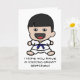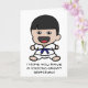 Cute card celebrates a birthday in a kicking fun way. It features a cute cartoon boy wearing a blue karate belt. You can customise the text on the front and inside.