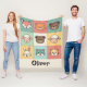 This charming personalised nursery blanket features adorable, kawaii animal faces, including a friendly fox, happy bears, sleepy sheep, a cheerful rabbit, and playful kittens.