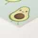 Adorable avocado patterned yoga mat features an allover pattern of smiling kawaii style avocados on a pastel green background. A cute design that's perfect for avocado lovers or kawaii fans!