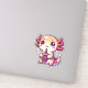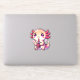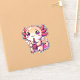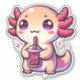 Cute pink axolotl holding a boba or bubble tea Kawaii cartoon.