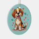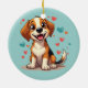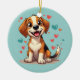 Cute Kawaii Beagle with Hearts Playful Dog Art Ceramic Ornament