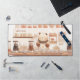 A cute desk mat with a barista bear illustration. It can be customised with a name or custom text/phrase.