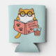 Illustration of cute Kawaii cat reading a book with the title "How to train your human" and drinking coffee