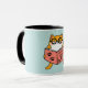 Illustration of cute Kawaii cat reading a book with the title "How to train your human" and drinking coffee