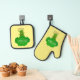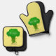 Cute kawaii dancing broccoli cartoon illustration oven mitt & pot holder set