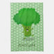 Cute kawaii dancing broccoli cartoon illustration tea towel