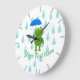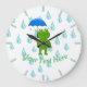 Cute Kawaii Frog and Rain Large Clock