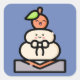 Cute smiling Kagami mochi and orange. The "mirror rice cake" is a traditional Japanese New Year decoration. It consists of two round mochi (rice cakes), the smaller placed atop the larger, and a daidai (a Japanese bitter orange).