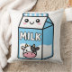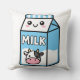 Cute Kawaii Milk Carton Illustration with Cow Icon Cushion