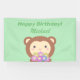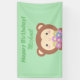 Cute Kawaii Monkey and Flowers Happy Birthday Banner