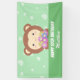 Cute Kawaii Monkey and Flowers Happy Birthday Banner