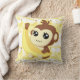 A very cute and kawaii monkey holding a banana, the background in yellow tones and banana pattern. seen here on a throw pillow with the option of adding your name