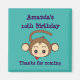 A cute commemorative birthday magnet. Customise with a name and event. Message at the bottom says thanks for coming. In the centre there is an illustration of a brown monkey with his tongue sticking out. Looking cheeky and mischievious. Drawn in an adorable kawaii style.