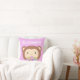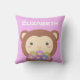 Cute Kawaii Monkey Pastel Purple Pink Flowers Name Throw Pillow