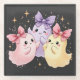 Cute Kawaii Pastel Ghosts with Sparkly Bows Glass Coaster