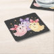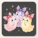 Cute Kawaii Pastel Ghosts with Sparkly Bows Square Paper Coaster